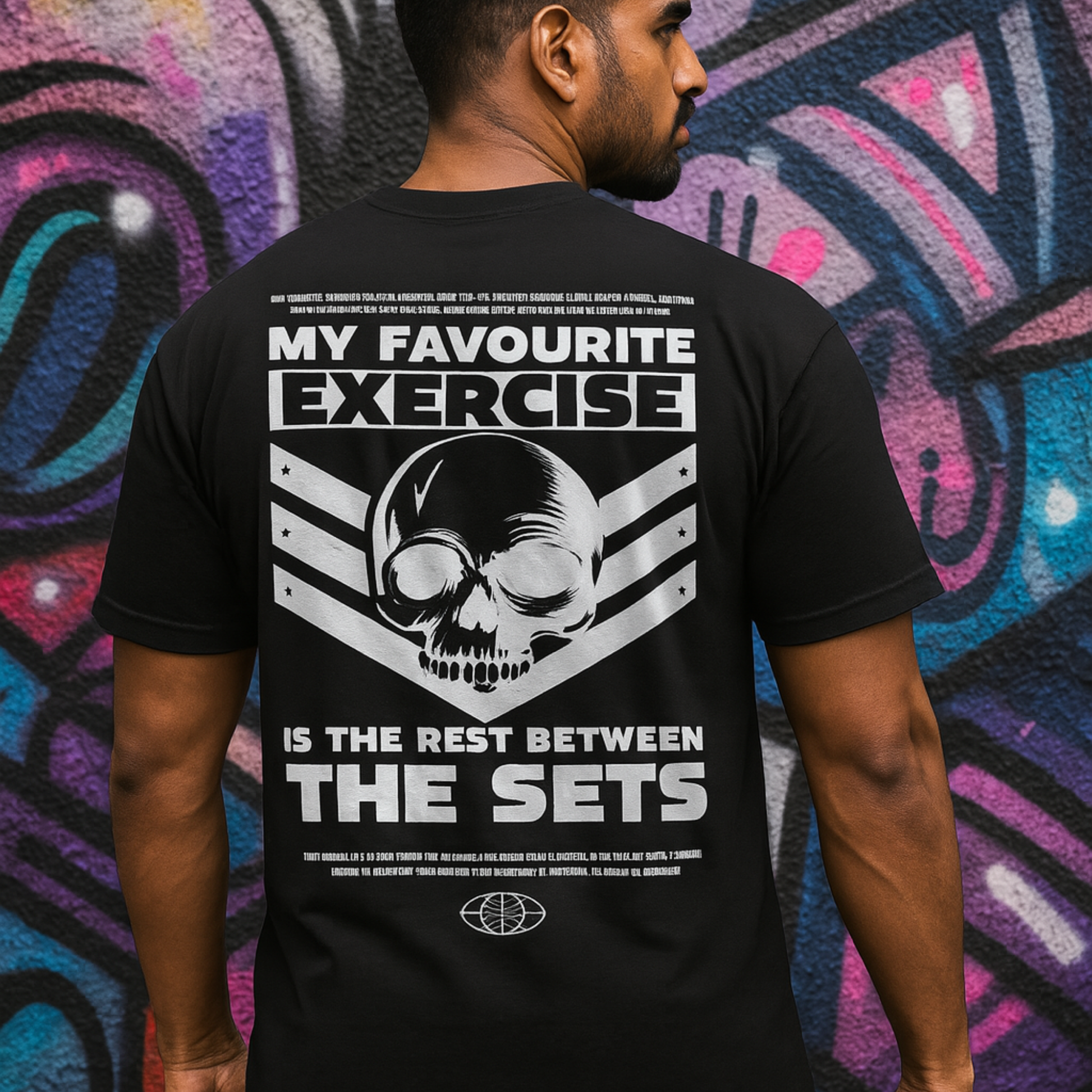 Rest Between Sets Skull Gym Tee – Black Edition Oversized