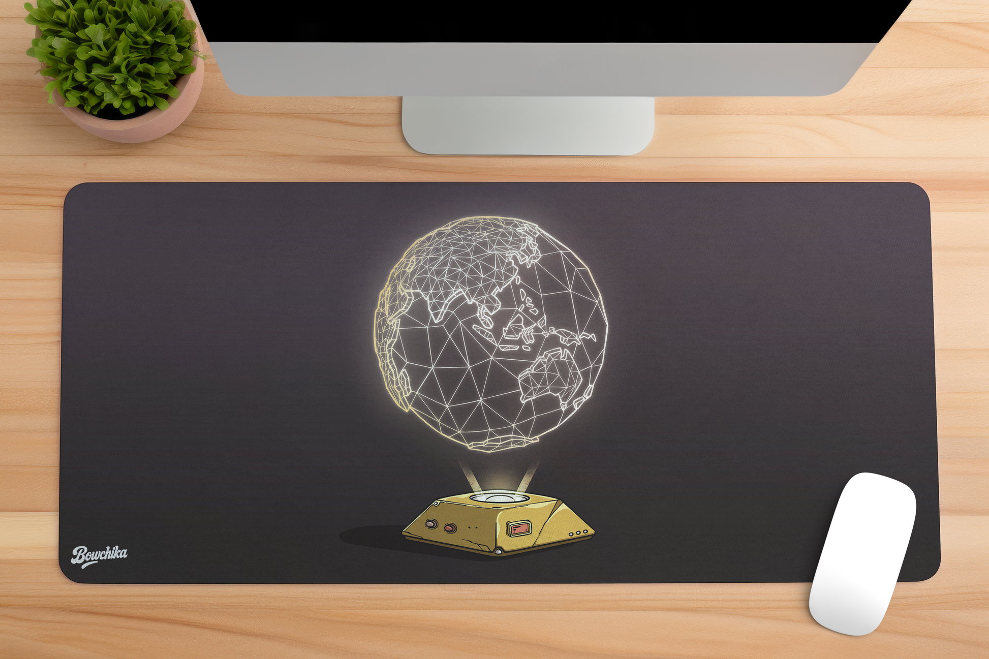 Bring futuristic vibes to your setup with this premium Holographic Globe Mousepad. Featuring a sleek design of a glowing hologram Earth projection, it’s perfect for tech enthusiasts, gamers, and creators who love a modern aesthetic. Crafted with a smooth surface for precise mouse control and a non-slip rubber base for stability, this oversized 80×33 cm desk mat gives you plenty of room for your mouse, keyboard, and accessories. Durable, stylish, and functional—level up your workspace with this unique piece.