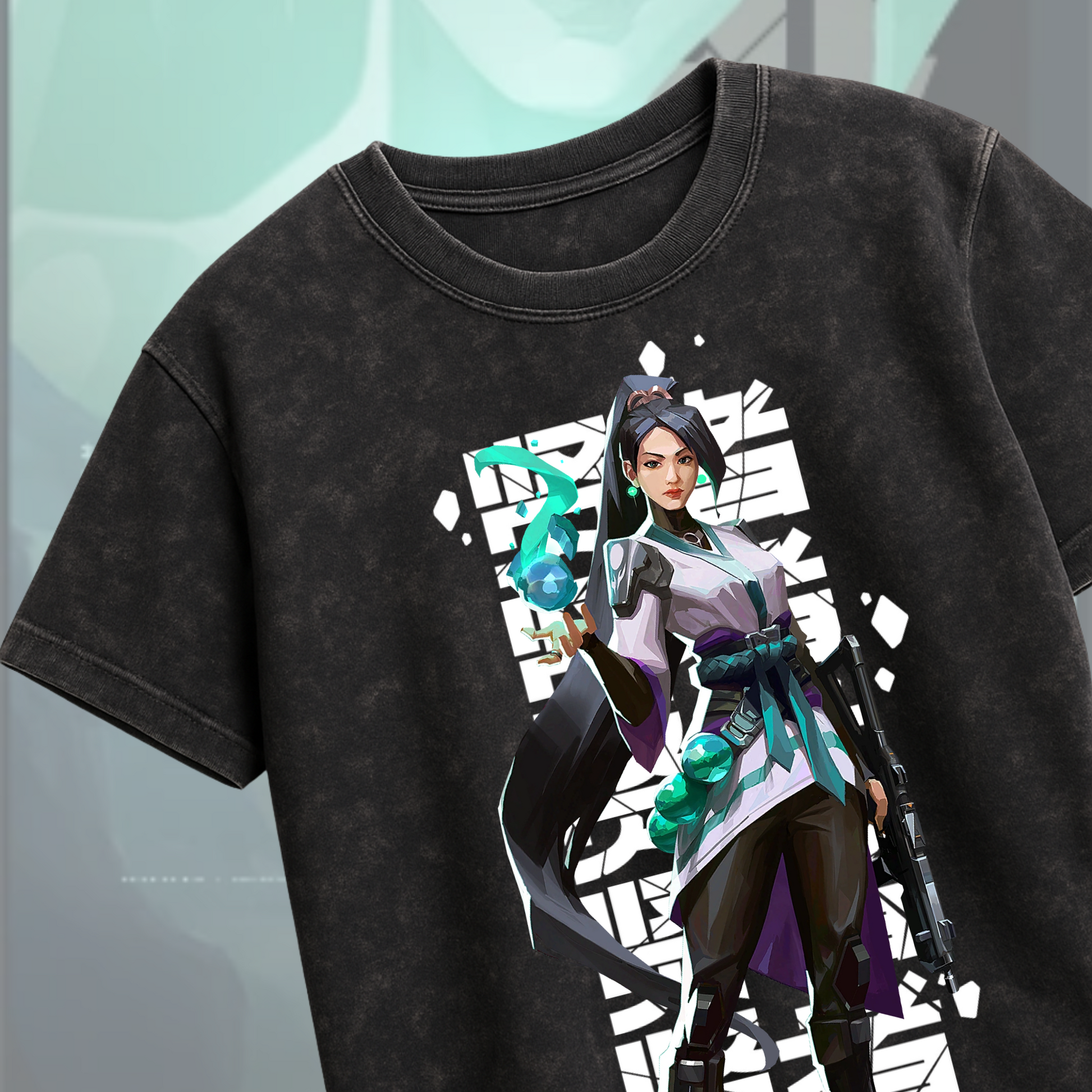 Strong yet serene, this 240 GSM acid wash Sage tee captures her essence as a protector. Crafted for players who bring balance, healing, and unwavering strength to every battle.